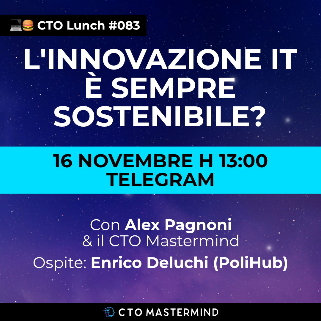 L’innovazione IT è sempre sostenibile? | 💻🍔 CTO Lunch #083 – ospite Enrico Deluchi
