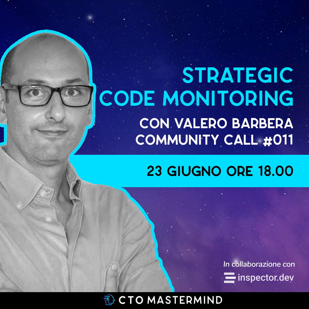 Come si fa a trasformare il monitoraggio del codice in una vera a propria risorsa strategica per la propria azienda? Ne parliamo con Valerio Barbera, CTO e Co-founder di inspector, durante questa Community Call di CTO Mastermind.