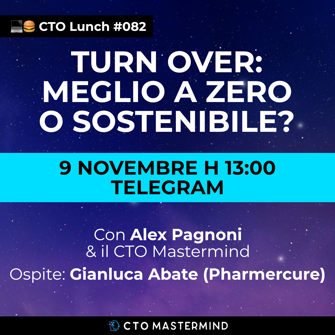Turn Over: meglio a zero o a un tasso sostenibile? | ๐ป๐ CTO Lunch #082 – ospite Gianluca Abate